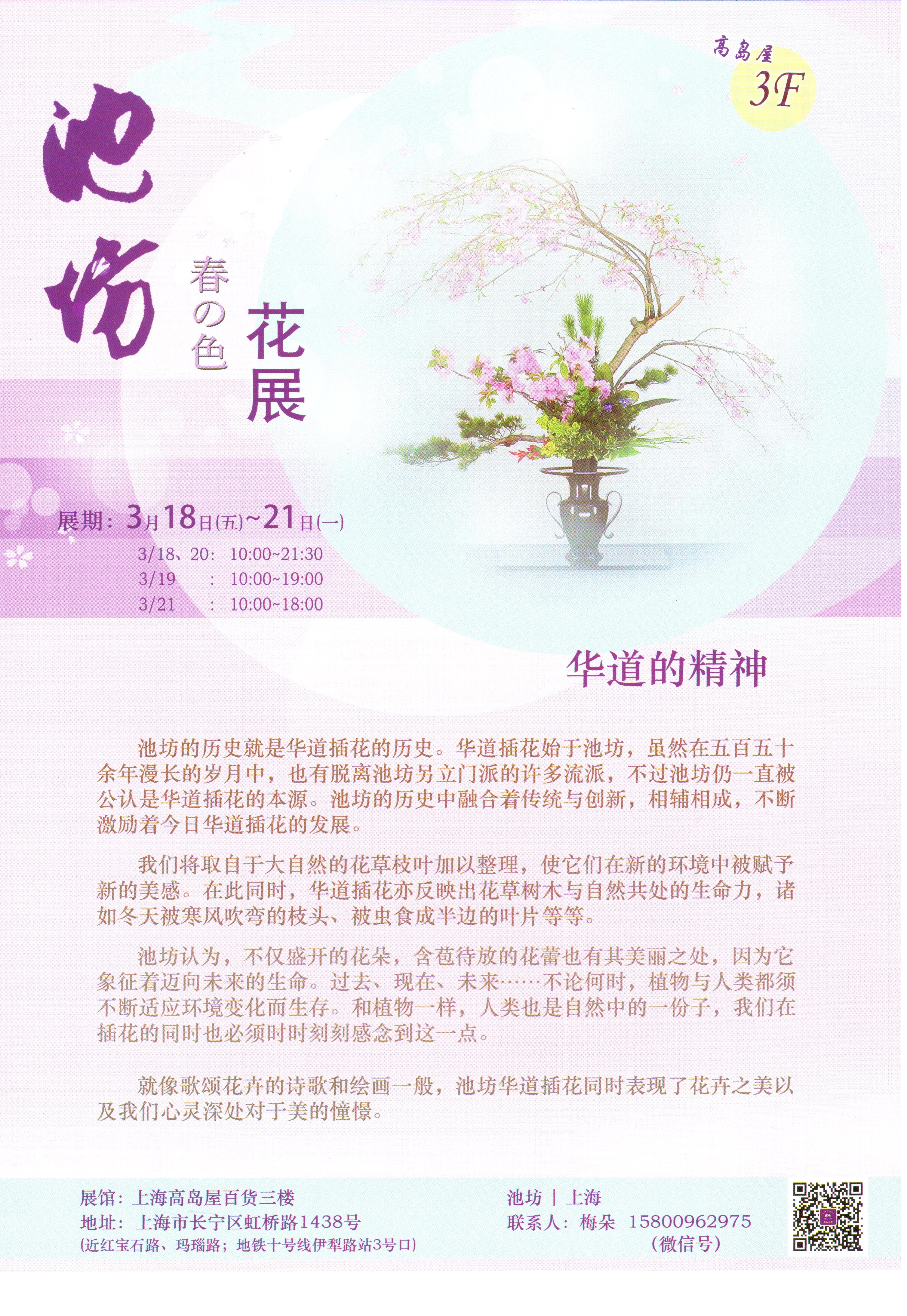 现场花道表演:3月18日 14:30-15:00