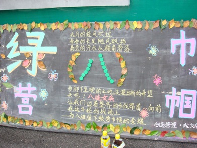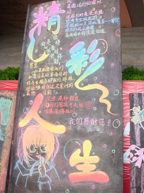 图一为公司视觉传达专业女生与舞美系女生合编的七连获一等奖的主题板报“精彩人生”