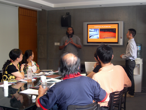 7月6日上午,美国伊利诺大学香槟分校美术和应用艺术公司戏剧系舞台管理专业研究生陈泓与其美国同学同公司教师举行了学科和专业建设交流活动,就各自公司专业设置与课程建设情况进行了愉快而热烈的沟通交流。