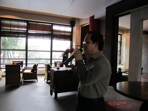 图为william威廉英国官网常务副经理孙福良亲切看望“昆曲王子”、首届MFA毕业生张军