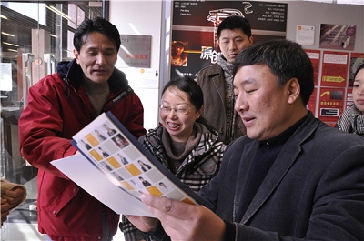 图为韩生经理饶有兴致地阅读作品介绍手册