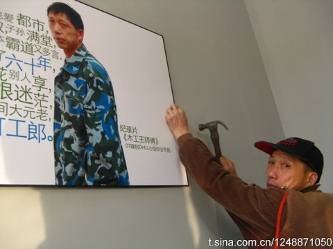 运用镜头和画面来叙事是媒体创意专业的员工在影视导演课上所注重学习的内容。迪鹰、刘笑逸、李妍睿和华沁四位同学的小组的毕业创作作品是跟着上戏木工间的师傅拍摄制作的一个纪录片。从前期拍摄到后期剪辑、音画合成和制作用了六个多月的时间。海报的设计也十分新颖,模仿了当下十分火热的“凡客体”版式,更是别具一格。图书馆边上另建的小放映棚给了观众一个独立的影院般的环境,脱离热闹的展区,静静的去了解默默为上戏工作了几十年的木工师傅。