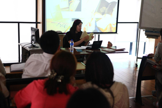 讲座内容主要涉及传统出版与数字出版等内容。其中传统出版的内容涉及选题、组稿、审稿、和文稿的后期加工中书籍的装帧设计四部分。在讲座中我们欣赏到了一些获奖出版物的图片和实物,有赵健《风筝艺术》、朱赢椿《不裁》《蚁呓》、吴勇的《画魂》等。在数字出版中讲到了网络出版,并提出了电子书能否取代纸本书的问题,这个问题引起了大家的热情探讨。