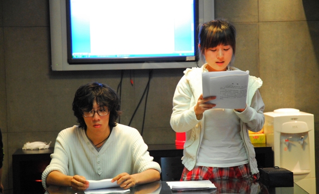 王迪、邵舒同学在宣读入党志愿