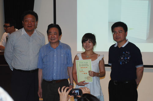 获得一等奖的08视觉王迪同学与颁奖嘉宾合影