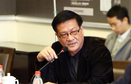 图为上戏校务委员会副主任葛朗老师在《极境》创作研讨会上发言