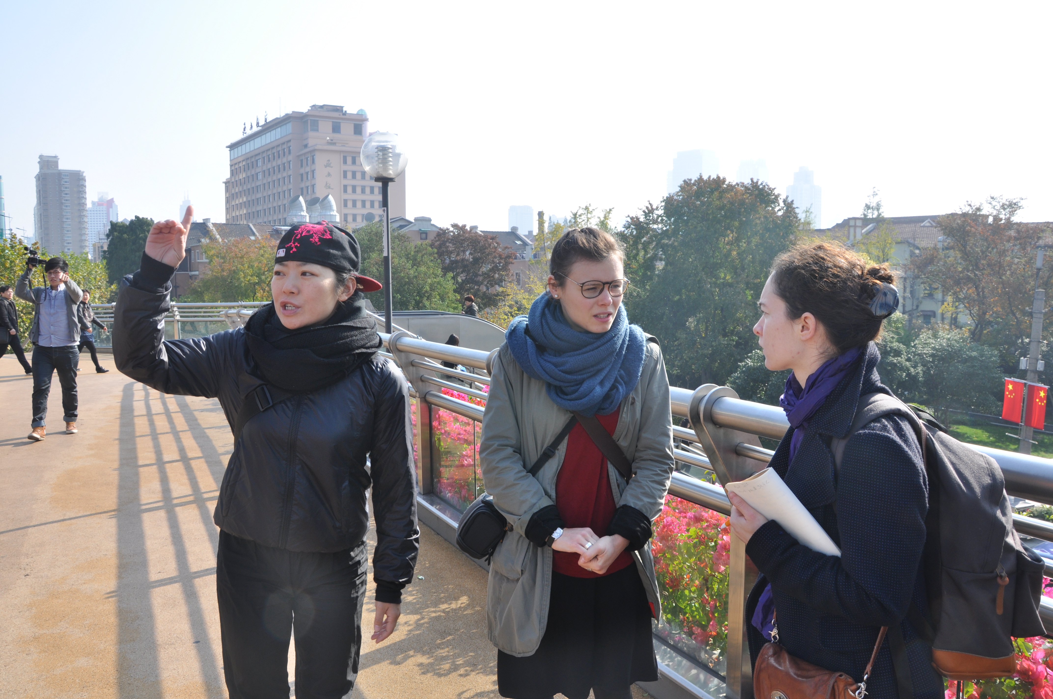 周六与周日的课程,我们多数时间是在我们即将演出的静安寺附近和排练厅度过的。周六上午,我们从公司沿着延安高架走到了静安公园,最后到达了与古希腊剧院非常相似的伊美广场。沿途中,老师教我们感受身边的一切,感受洒水车开过的声音,感受静安公园老年人的活力。我们似乎放下了一切的包袱,此时,我们只是我们这个独立的个体,我们用自己身体的每一个部分去感受这个世界,去感受古希腊戏剧边走边唱边演的形式。而周六下午和周日在形体房的课程,则是让我们开心至极,我们跟着老师做一系列的游戏,感受演员在舞台上与观众的关系,感受我们的身体的变化,这个时候,时间似乎是奢侈品,在我们大笑的时候,偷偷溜走了。