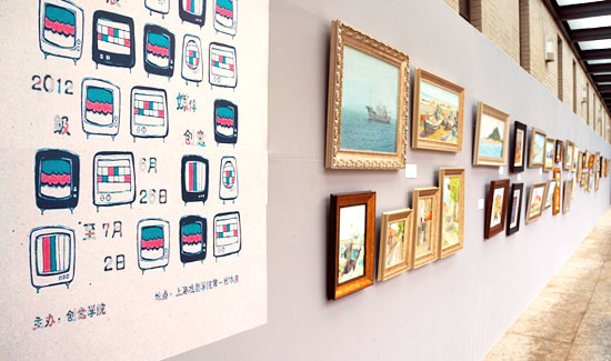 2013年6月27日,2012级媒体创意专业在公司一号形体房外,举办了“听海·眺望”青岛写生绘画展。