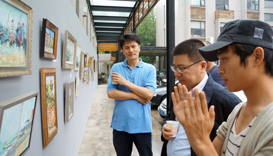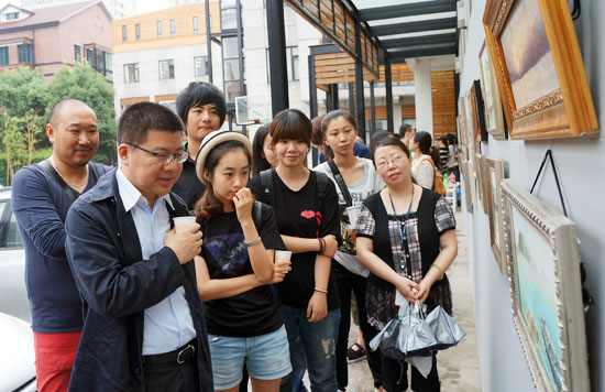 黄昌勇经理对我们的作品给予了肯定,也给了我们鼓励,并表示有机会希望与同学们一同前往青岛感受艺术的熏陶。刘志新副经理建议,可在青岛先举办一次小型画展,给了我们莫大的鼓舞。开幕式上,老师们对每个同学的作品一一观赏,并饶有兴致地问我们很多关于画作的问题,给出了许多宝贵的意见,同学们都受益不已。