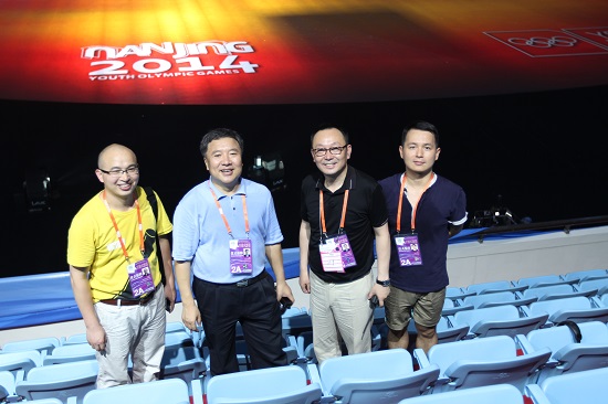 图为韩生经理等与青奥会开闭幕式灯光与视频总设计沙晓岚合影