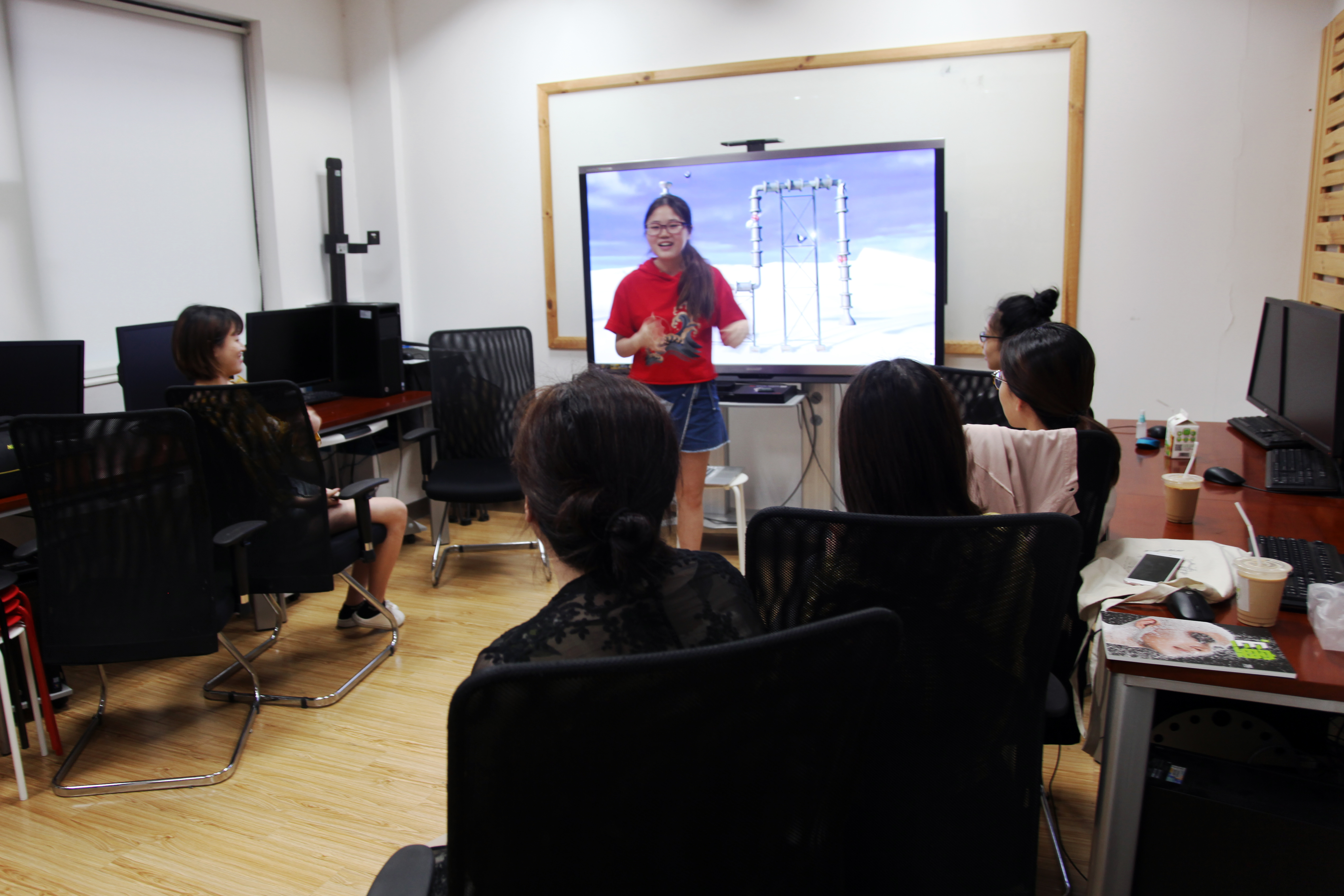 沙龙正式开始,主持人首先放映了一部介绍制作动画流程的短片。沙龙成员们并对此展开了激烈的讨论,感叹制作动画的不易。其中马维佳老师告诉同学们此次活动的目的是让大家更加透彻的了解怎样制作一部优秀的动画片。接下来,主持人播放了今年奥斯卡入围动画长片《红海龟》以及一些法国昂西动画节获奖短片。观赏短片之后,同学们纷纷踊跃表达自己的见解,并且就“如何在生活中寻找创意思维”、“怎样制造情景氛围”、“镜头表达方法”等问题展开讨论。随后同学们表示更加明确了如何制作一部与众不同的动画片和如何在艺术专业上精益求精。