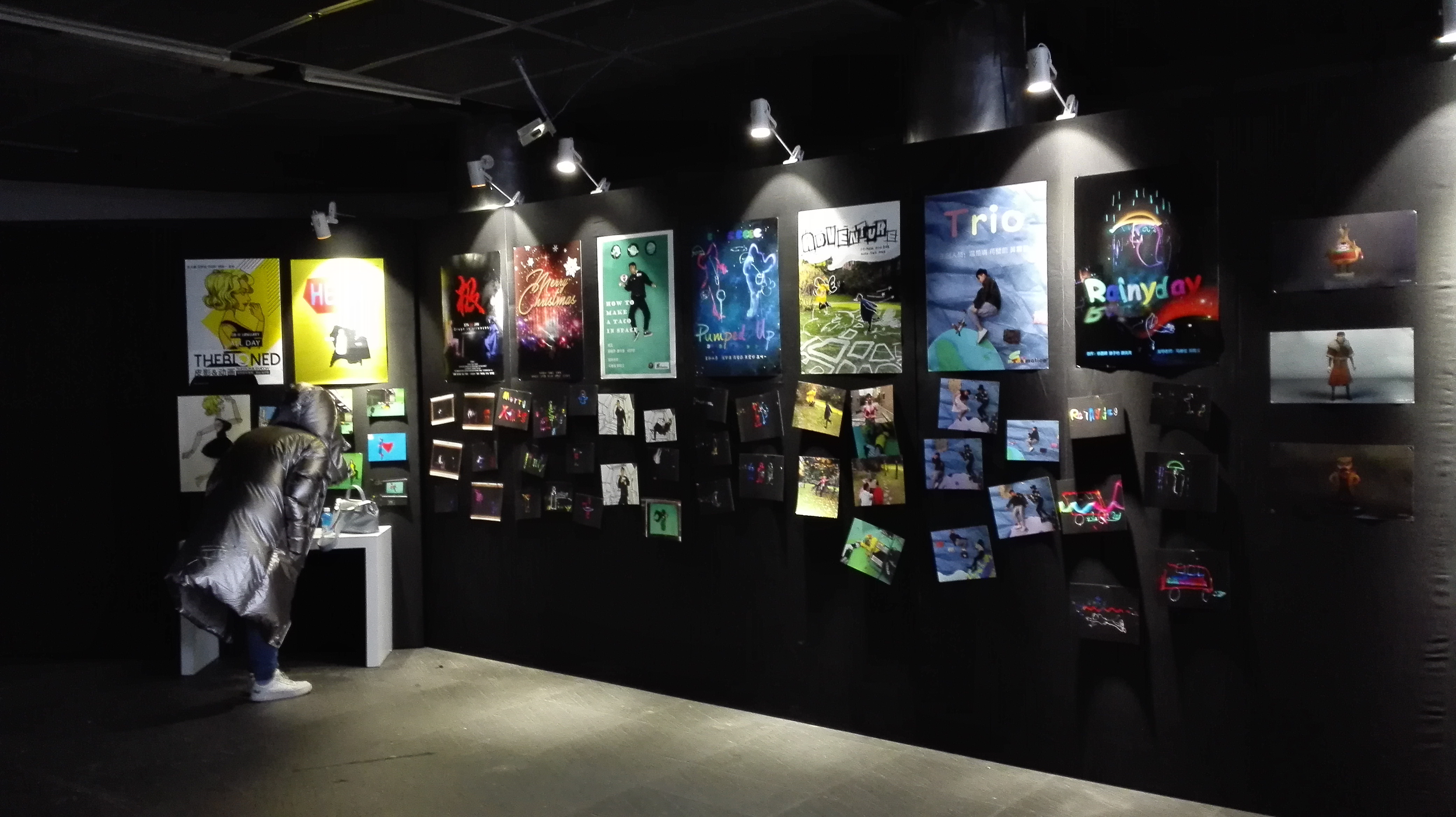 为期四天的作品展在端鈞剧场内一经展出,短暂的时间内便吸引了校园内外的观众们。与在院线看到的传统的动画片不同,实验动画作品更强调动画艺术丰富的表现形式和创新手法。播放动画片视频采用了电视机、投影仪和电子相框这些不同的媒介,为了适应不同作品的需要,同时也创造出展览错落有致的空间感,给观众们带来不同的视听体验。每部视频作品周围展出了制作动画所使用的实物,一幅幅不同风格的手绘原稿,分层展箱内精致的剪纸人偶和场景模型,真人实拍定格在绿幕教室里的花絮照片,在夜晚使用延时曝光技术拍摄的光动画照片等等,琳琅满目的实物展品向观众们揭示了不同形式的动画作品制作过程的秘密。观众们在观看展览的过程中,带着好奇和作者们一起探索了动画艺术的魅力。同学们收到了各种反馈,或是生动有趣,或是技艺精湛,或是引人深思,这些评论与建议都将为同学们日后的创作积累更多的灵感与经验。这场动画盛宴也加深了其他专业老师和同学们对动画这门艺术的了解,促进了跨学术之间的交流。 为了本次作品展顺利进行,同学和老师们都全身心投入,付出了辛勤的努力。本学期伊始,同学们就开始着手准备本次期末的作品展,展览前一周,在工作室通宵工作的夜晚,早起修改作品的清晨,小组反反复复讨论修改,这些都成为家常便饭。对每一个细节的仔细推敲,无数次的头脑风暴,精益求精,力求最终呈现给观众们一个高水平的展览。