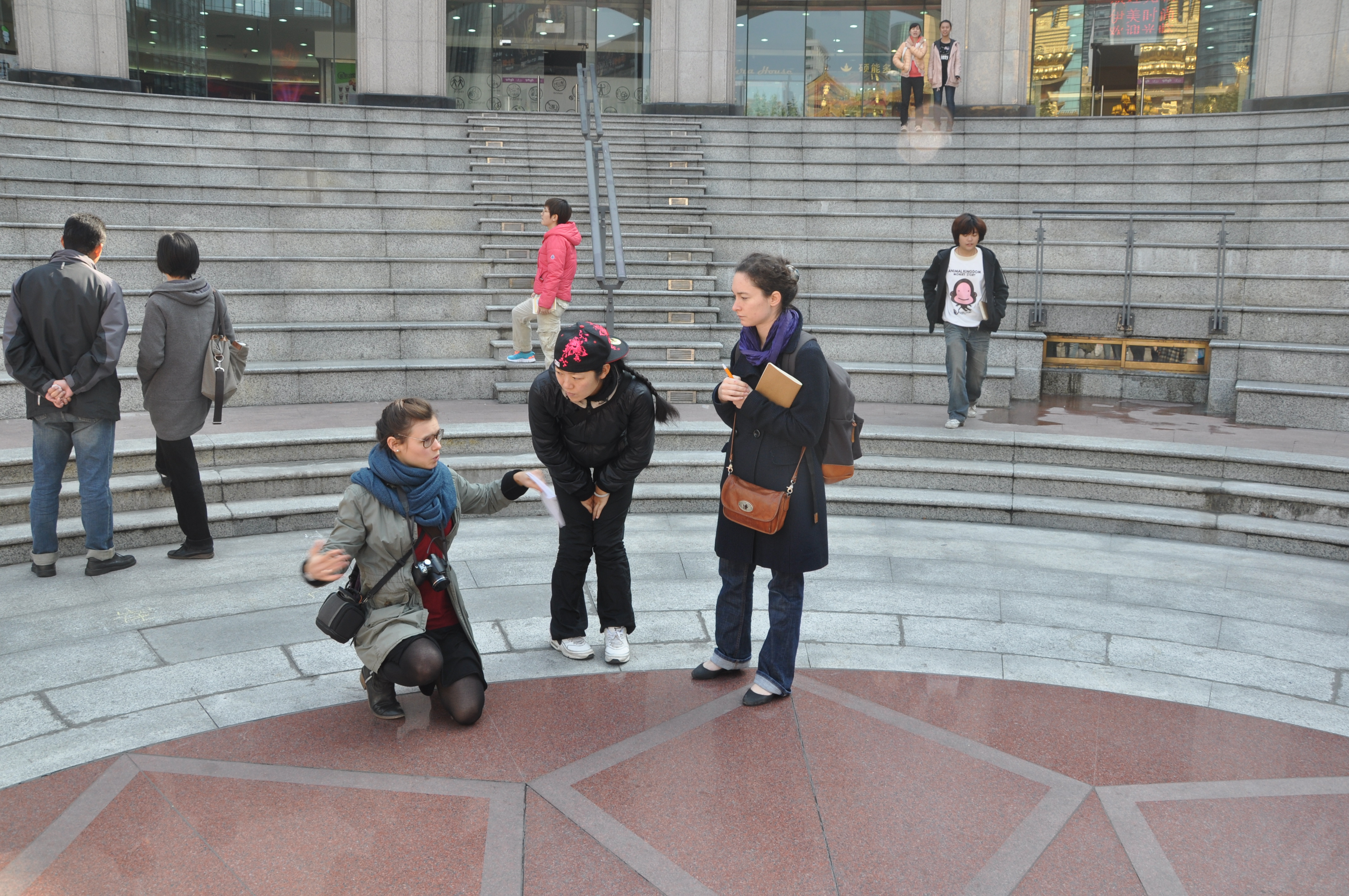 周六与周日的课程,我们多数时间是在我们即将演出的静安寺附近和排练厅度过的。周六上午,我们从公司沿着延安高架走到了静安公园,最后到达了与古希腊剧院非常相似的伊美广场。沿途中,老师教我们感受身边的一切,感受洒水车开过的声音,感受静安公园老年人的活力。我们似乎放下了一切的包袱,此时,我们只是我们这个独立的个体,我们用自己身体的每一个部分去感受这个世界,去感受古希腊戏剧边走边唱边演的形式。而周六下午和周日在形体房的课程,则是让我们开心至极,我们跟着老师做一系列的游戏,感受演员在舞台上与观众的关系,感受我们的身体的变化,这个时候,时间似乎是奢侈品,在我们大笑的时候,偷偷溜走了。
