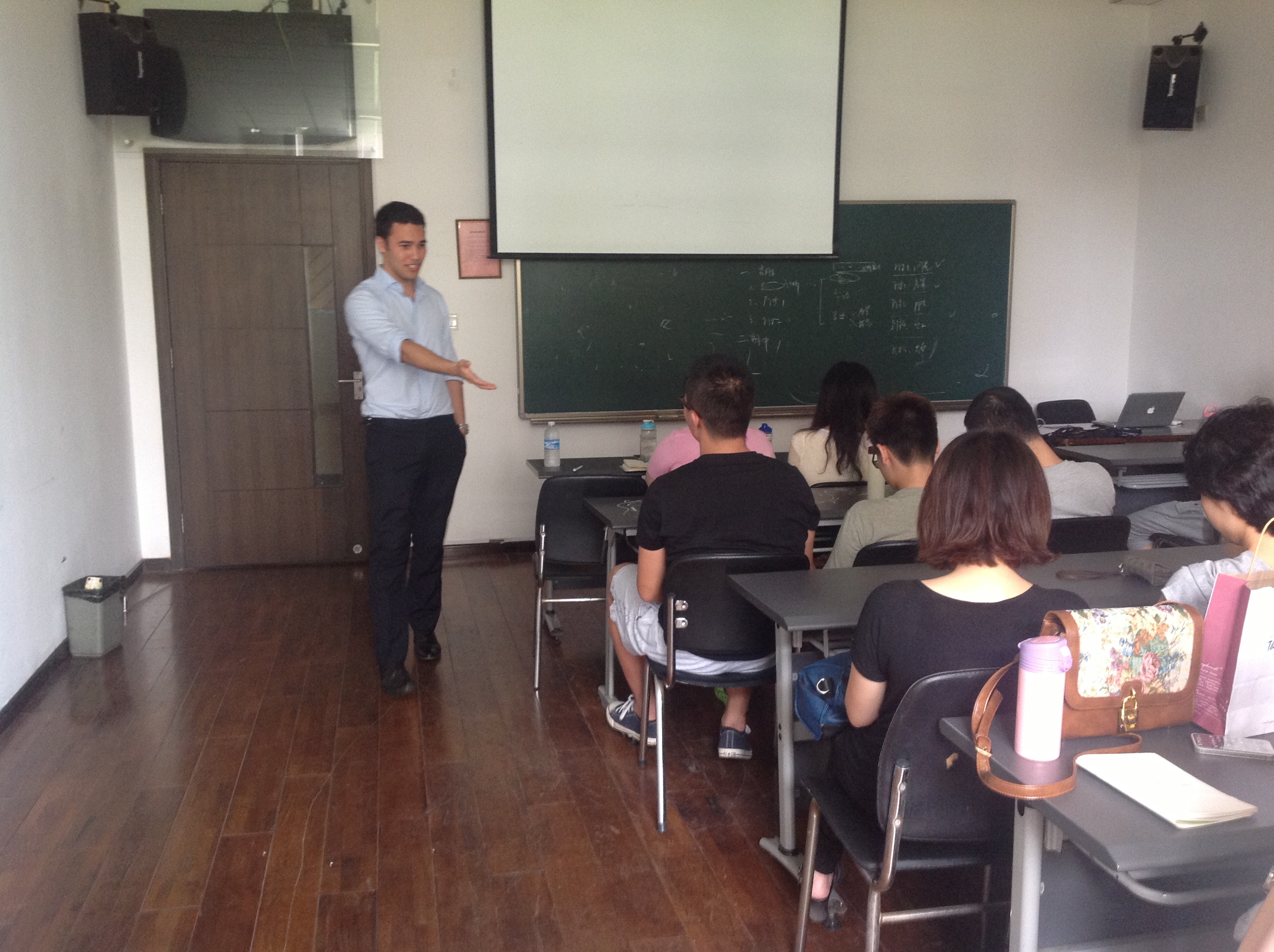 618日,周二下午的1:30,在红楼204教室,12级艺术管理班、11级剧场管理班以及其他班的同学一同参与了由澳洲史蒂文•福克斯带来的演讲。为了使我们大家都跟得上他的节奏,他适当放慢语速,并始终保持着笑容和大家沟通交流。