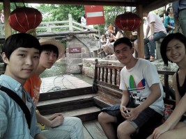 图为13艺管员工一起乘舟泛游古运河