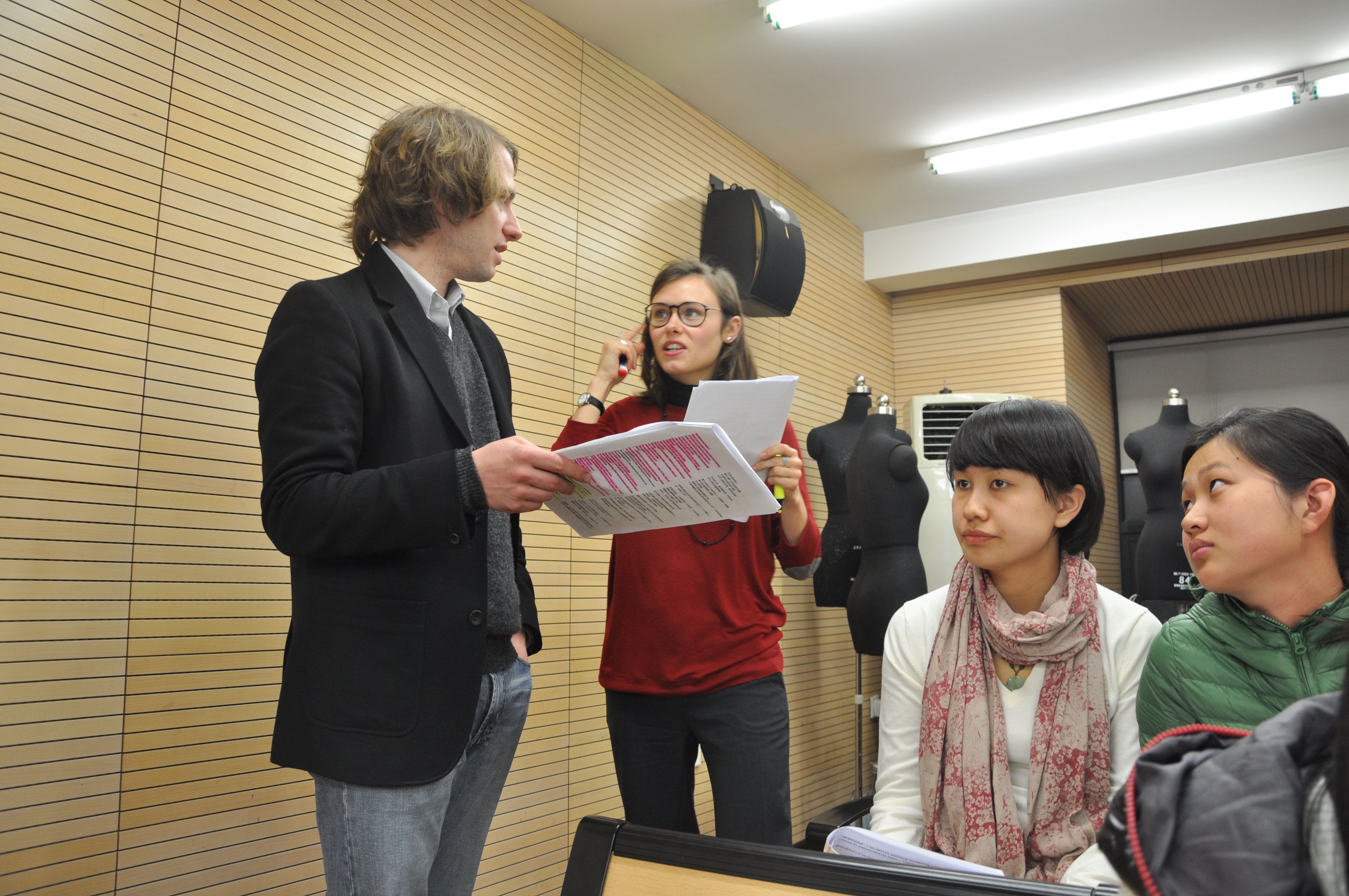 从第一次和两位来自法国国立艺术公司的老师简单见面,到即将展示这个法语班工作坊的成果,我们一起度过了非常充实而又快乐的十天。老师的热情、真诚,以及严谨的工作态度、新颖的形式与内容浑然天成一种独特的魅力,轻松地将法语班三个系的同学凝聚起来,在整个学习与交流的过程中积极参与,全心投入。我们收获很多。