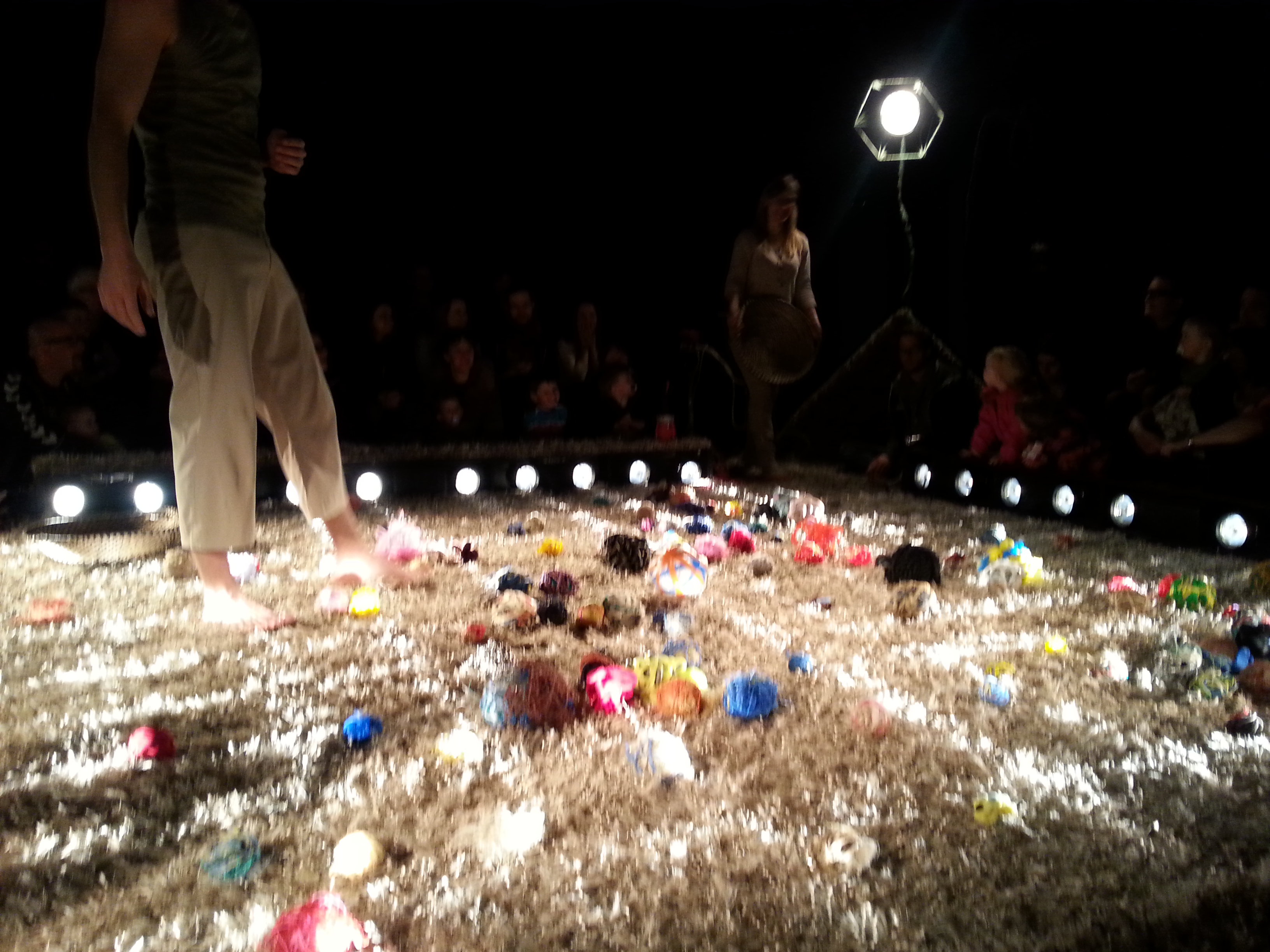 舞剧结束时舞者们变出了各种彩色的夜光毛线球,邀请所有的小观众和家长进入场地玩耍,整个剧场溢满了温馨。