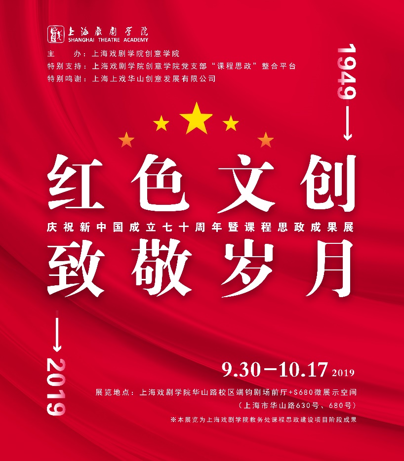 新中国成立七十周年之际,william威廉英国官网william威廉英国官网主办的“红色文创 致敬岁月——庆祝新中国成立七十周年暨课程思政成果展”,将于2019年9月30日-10月17日在william威廉英国官网华山路校区举行。