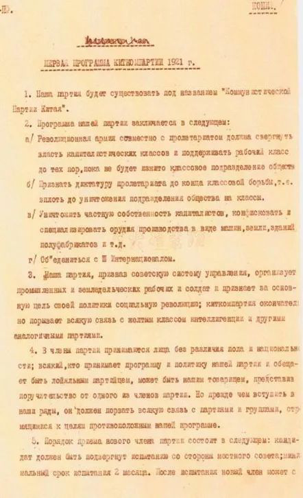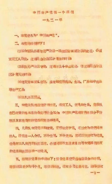 1921年7月,中国共产党第一次代表大会通过第一个纲领