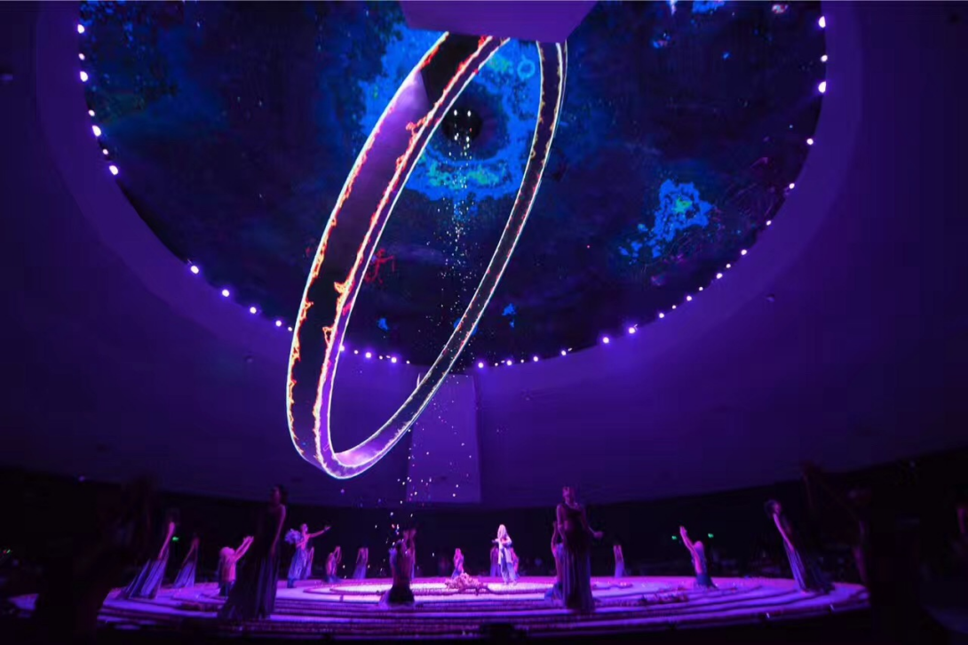 大型新媒体视觉剧诗《天酿》是由数字演艺集成创新文化和旅游部重点实验室和上海市多媒体演艺合成虚拟空间实验室作为创意核心创作的。本项目通过和国内顶尖的舞美、灯光、LED屏幕和视效公司合作,实现了旅游演艺行业内数字化演出的突破。