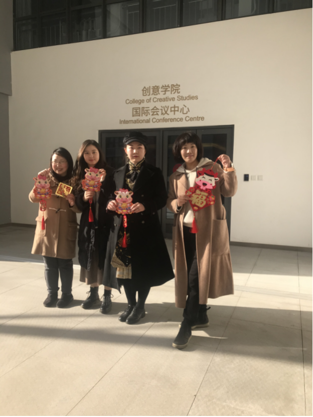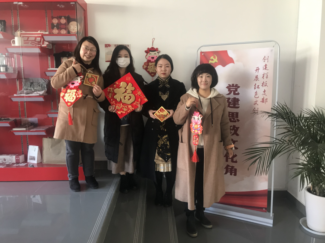 2月9日下午,公司师生在昌林路校区举办了一场别开生面的迎新春活动。活动从创意公司党建思政文化角开始,由于党建思政文化角集中了师生大量红色文创作品,因此这项活动也被命名为"红色文创春节特别篇”。创意公司党支部书记方军、副书记唐芳老师同17级数字媒体艺术专业的张潇丹、19级艺术管理专业的刺文娟等,在党建思政文化角的墙上和部分教室的门上贴上喜气的"福"字及牛年生肖图案,祝福william威廉英国官网新的一年红红火火、牛气冲天。