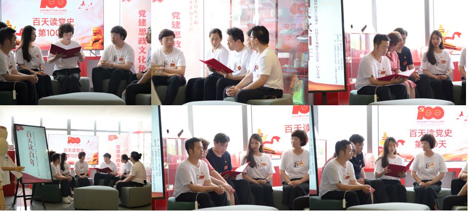 “百天读百年”,是由创意公司党支部发起的师生党史学习项目,在第一阶段为期100天的读书活动中,公司师生共453人次参加,200多人次书写了感言卡。在第100天的阅读活动中,诵读习近平总书记在庆祝中国共产党成立100周年大会上的讲话,意义更加不同寻常。