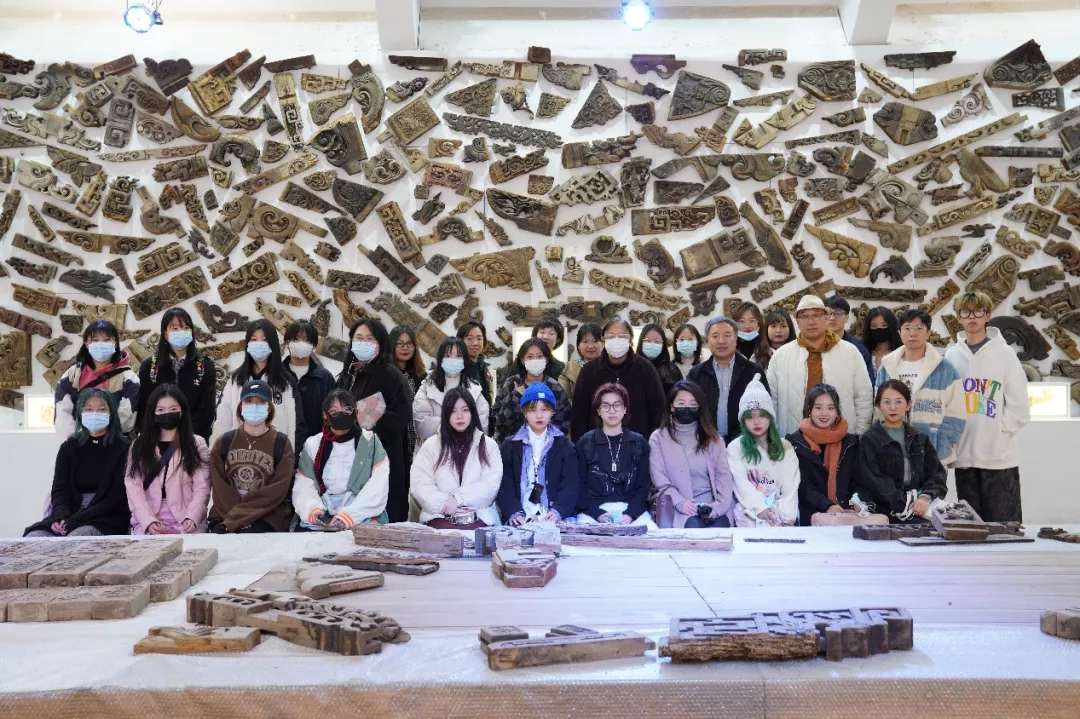 在此次学习过程中,胡项城先生带领师生参观了三个特色展馆。第一个展馆中布满古朴而精致的古建筑物残片,屋檐小角、门框、栋梁、雕刻工具等承载着匠人经年技艺的见证物沉浸于此;第二个展馆里储存了昔日上海大大小小常见的日常用品,如:沙发、收音机、缝纫机、服饰、年画等,充满浓郁的民众生活气息与儿时的记忆之中;第三个展馆中陈列织布机、水车、厨具、布匹、农耕用具等,让质朴的农作生活宛如画卷般展开。