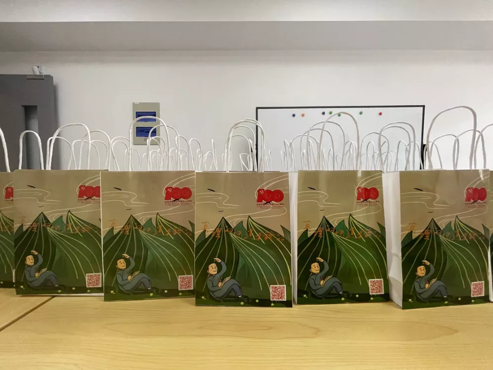 同学们将党史学习和传统节日端午节充分结合,以此为载体传播“党史”故事, “粽”情端午忆党史,“党史”是红色文创的源泉,同学们在活动中传播党史故事,讲述“真理的故事”,讲述我们党百年征程的故事,在讲“党史”的过程中去尝“真理”的味道。
