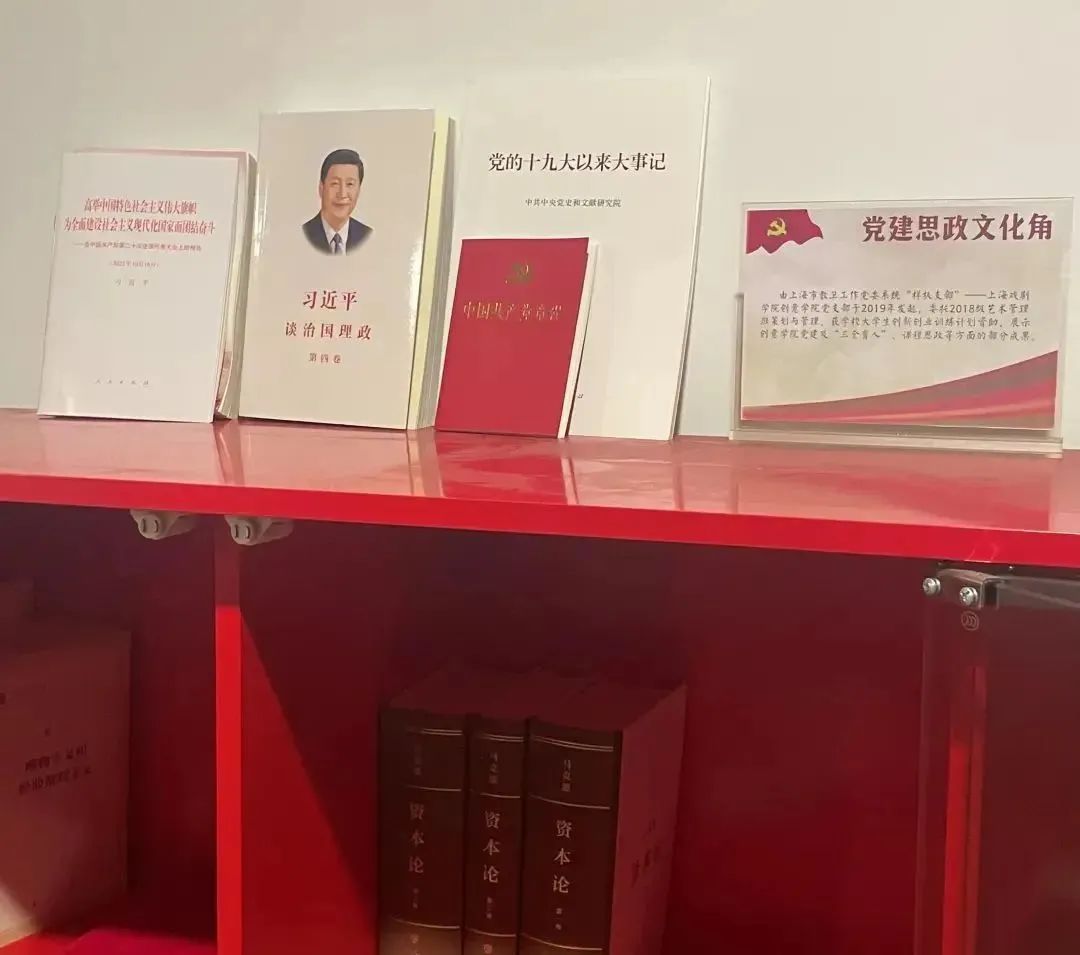 “党建思政文创角”的阅读专区,添置了《习近平谈治国理政》(第四卷)《高举中国特色社会主义伟大旗帜 为全面建设社会主义现代化国家而团结奋斗——在中国共产党第二十次全国代表大会上的报告》《中国共产党章程》《党的十九大以来大事记》等书籍,供大家随时学习。