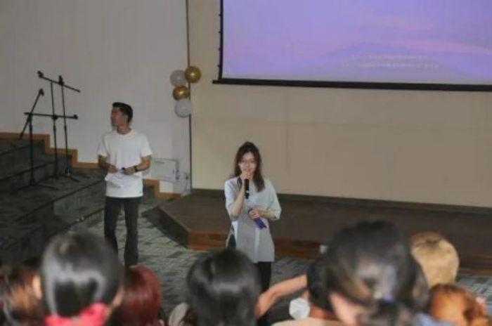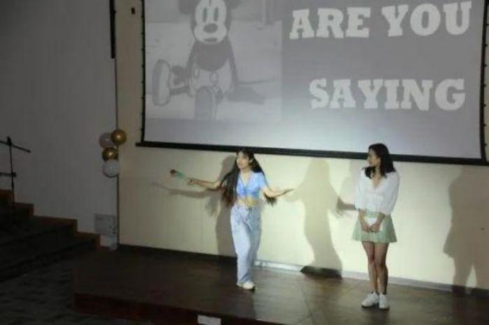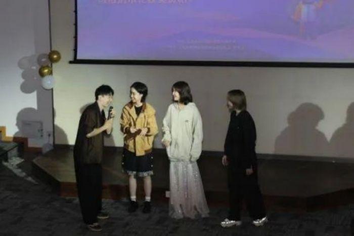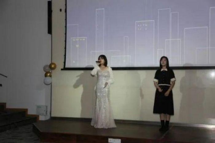 晚会主持(从左至右 23艺管本科生王静茹 、23国际戏剧交流管理研究生宋城杰、23艺管本科生陆玛尼克)