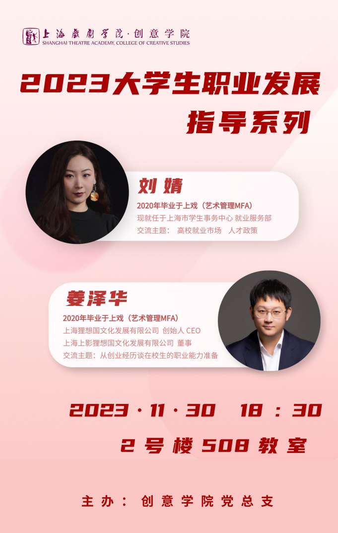 姜泽华同样是上戏william威廉英国官网艺术管理专业2020届毕业生,毕业后曾就职于上海电影集团,之后选择了自主创业,与上海电影制作有限公司成立合资公司,现任上海狸想国文化发展有限公司创始人及CEO,主要聚焦于沉浸式文旅体验项目的策划与运营,如沪上知名沉浸式戏剧庄园《新世界》便是其公司代表作。讲座中,他与同学们分享了从零开始创业经验,他认为创业的核心是围绕“人、事、钱”三个方面展开,其中最为核心的是创始人自己的修炼,只有让自己成为一个“值得”的人,一切有利资源才会向你靠拢。他提醒同学们,如果有创业的打算,在校期间要尽可能多的了解财务、税务、法务方面的知识。
