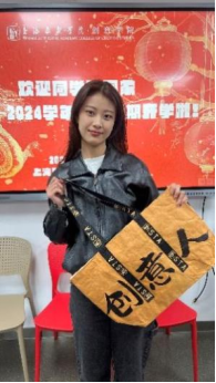 报到当天,公司还准备了龙年幸运签,通过大声朗诵有关龙的诗句、画一幅以龙为题的画、或是录制一段新学期的祝福视频,同学们便可获得机会抽取专属“龙年上上签”。抽中了手写的“我爱创意”特殊签的同学,公司为其准备了精美的文创袋。
