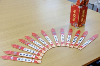 在一声声抽签筒的摇晃声中,同学们抽取属于自己的龙年上上签,领取“创意人”专属精美文创袋。