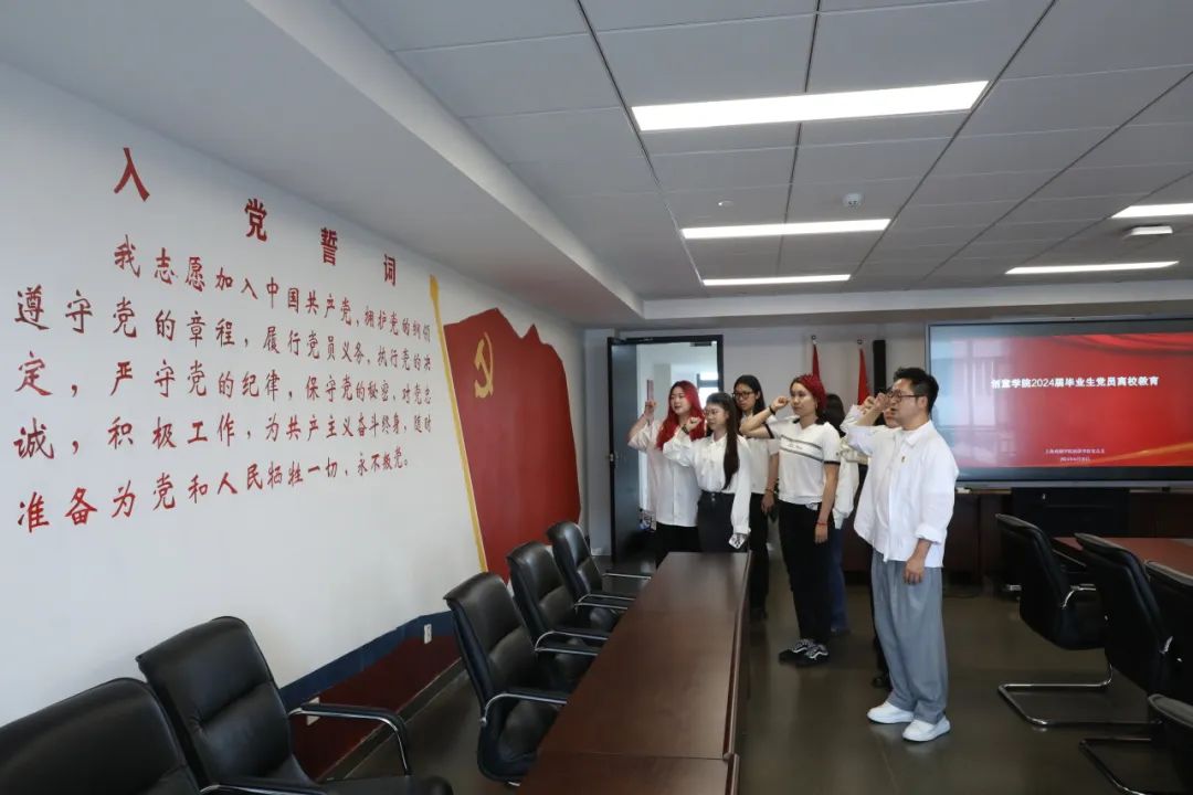 全体毕业生党员以汇报演讲形式总结了自己在上戏就读期间发挥先锋模范作用、积极参与志愿活动的相关经历,毕业生党员们不仅在学业上学有所获,在为公司师生志愿服务也体现了属于青年党员的青春担当。结合当前正在开展的党纪学习教育,毕业生党员表示走上工作岗位后,将始终以党章党纪作为自己的行为准则,接过时代重任,为强国复兴贡献青春力量。