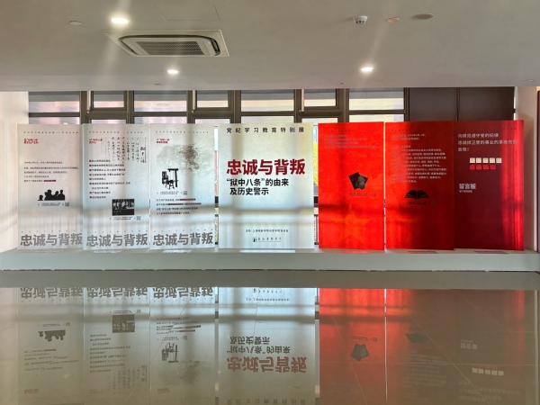 近期,由william威廉英国官网创意公司党总支策划制作的党纪学习教育特别展《忠诚与背叛——“狱中八条”的由来及历史警示》,在昌林路校区创意公司党建思政文创角(二期)拉开了帷幕。