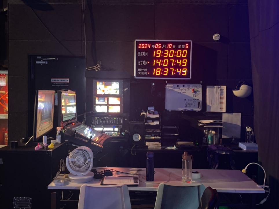 技术老师还为学员们介绍了他平时工作的操作台,位于主剧场右侧后台区域,临近上场口。对此,老师解说这一安排是为了离舞台更近、能够在第一时间观察舞台情况、并且方便与团方舞监进行技术沟通。
