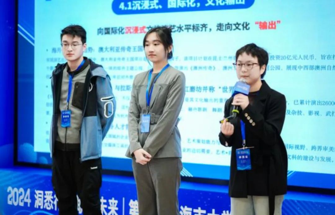 决赛现场,团队从行业概览、市场供需、影响因素、未来展望等维度,全面立体地进行展示与答辩。从严谨专业的分析中看出同学们对文旅演艺行业的研究和看法,展现了上戏学子扎实的理论知识、实践运用能力以及深厚的人文关怀。