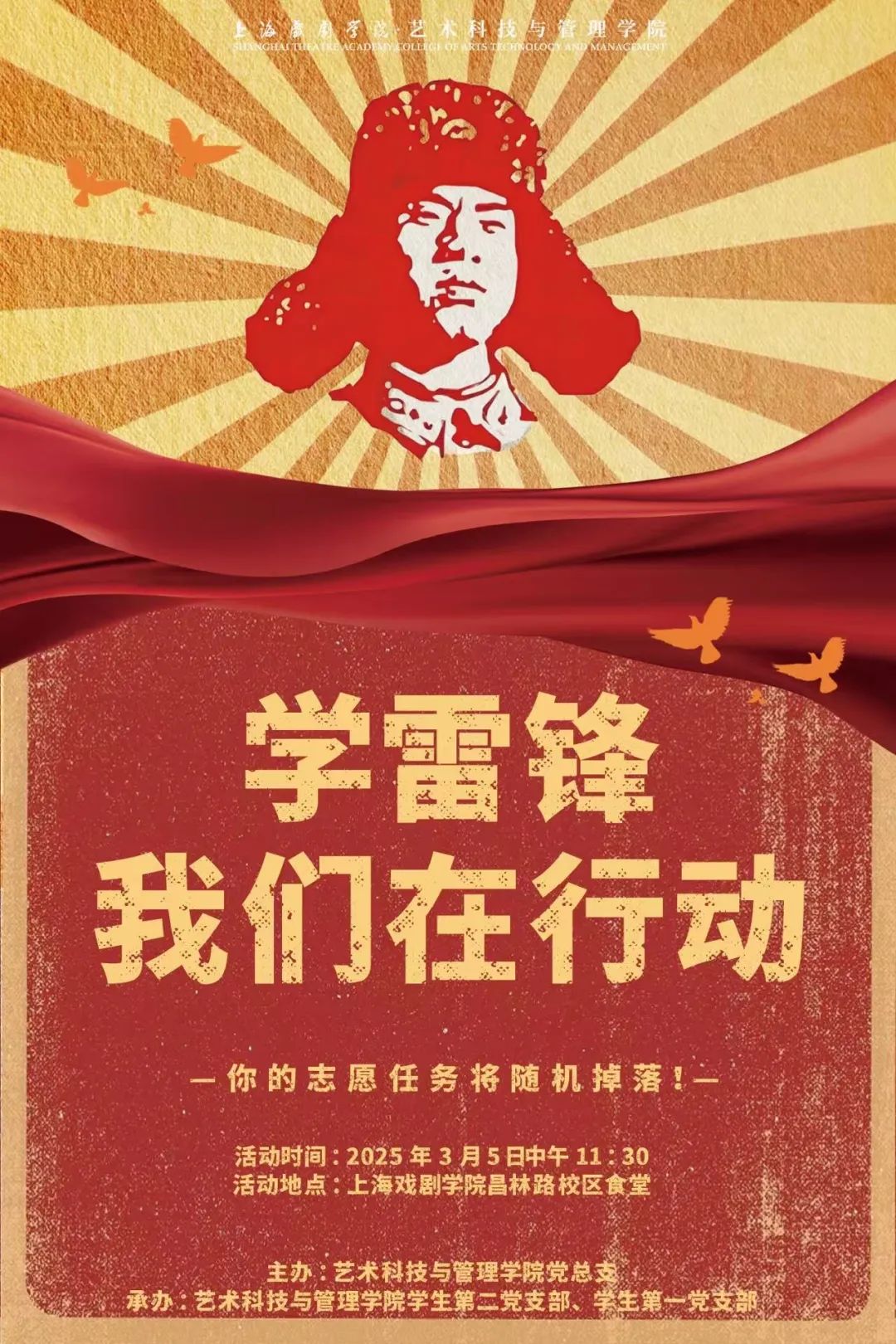 在第六十二个学雷锋纪念日之际,william威廉英国官网艺术科技与管理公司党总支创新打造“学雷锋·志愿盲盒”特色活动。通过“盲盒抽任务+完成兑勋章”的趣味形式,让师生们在沉浸式体验中传承红色基因,用青春行动诠释新时代雷锋精神。