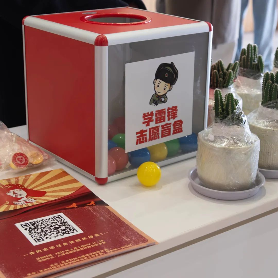 3月5日的昌林路校区,洋溢着别样的青春热情。在绘有雷锋画像的创意展板前,师生们通过扫码登记抽取专属盲盒任务——有的可能是整理图书馆书籍、整理教室,有的也可能是为后勤人员送上绿植和手写感谢卡片、和同学们分享读书笔记等。每个盲盒都藏着温暖期待,每项任务都是善意的接力。