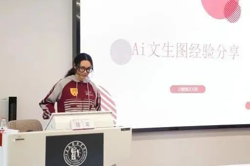AI创作工作坊特邀AI校歌MV主创王文林、中国好创意暨全国数字艺术设计大赛国赛金奖得主徐子媛两位同学现场分享,演示从AI脚本生成到特效包装的全流程技法,实现红色叙事与智能技术的深度融合。