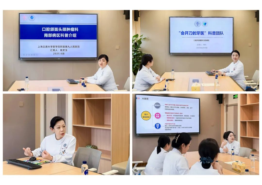 为深入践行“以人民为中心”的发展思想,探索艺术科技与管理师生力量服务社会、服务人民的创新实践,6月19日下午,公司师生走进上海交通大学医公司附属第九人民医院(以下简称“九院”),开展了一场以“AI赋能医疗科普”为主题的创新研讨会。 本次交流旨在党建引领下,寻找艺术科技与医疗健康科普的深度结合点,为创新医疗公共服务形式注入新活力。党总支副书记唐芳、薛嘉,副教授朱云、辅导员孔小磊、员工代表出席会议,九院口腔颌面外科科护士长王悦平与相关科室共同热情接待了公司师生一行。