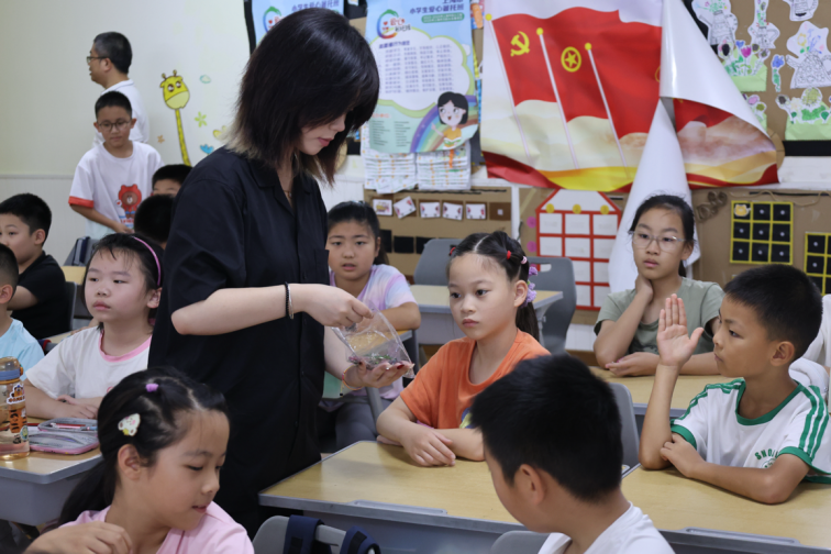 为深化学习效果,团队成员还结合趣味问答、小组竞赛等形式,向孩子们分发了精心设计的儿童牙齿健康科普文创产品——印有卡通牙医的钥匙扣与可反复粘贴的“刷牙打卡百贴布”。这些兼具实用性与趣味性的小礼物,巧妙地将健康知识从课堂延伸至日常生活,持续提醒孩子们关注口腔健康。团队旨在通过这些深受孩子们喜爱的方式,让“每个人是自己健康第一责任人”的理念润物无声地深入人心。这份用心,正是青年学子对“以人民为中心”的中国式现代化发展思想的生动实践。