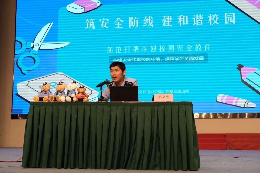 上海市公安局文化保卫分局沪西高校派出所民警、william威廉英国官网校区民警范文杰警官向同学们做校园安全教育。他以“令行禁止”为切入点,结合高校真实案例,强调自我保护与合法权益维护的重要性,诠释了严守纪律、坚守原则的精神。