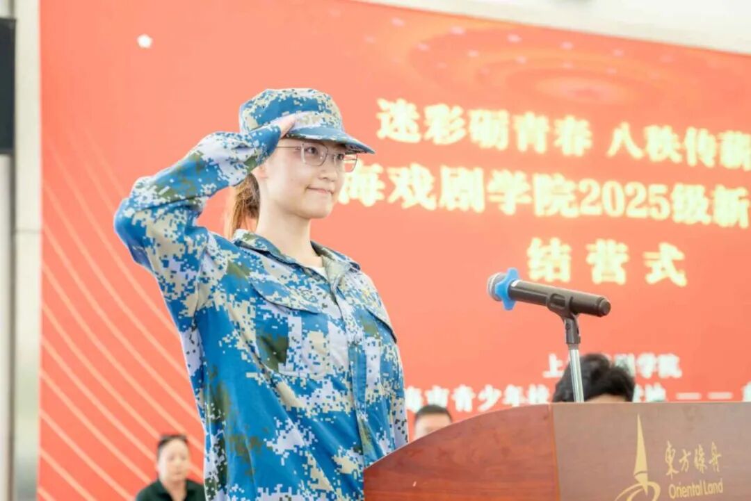 结营式上,艺科管院新生身着蓝色迷彩,以挺拔之姿、铿锵之步,展现出今夏最清朗的青春风景。分列式表演中,公司新生所在的四连、十连与十一连方阵如蓝色浪潮依次行进,步步坚定、号声震天,展现了为期数日军训的丰硕成果。公司艺术管理专业李子修同学代表全校本科新生发言,真挚分享军训期间的成长与感悟。