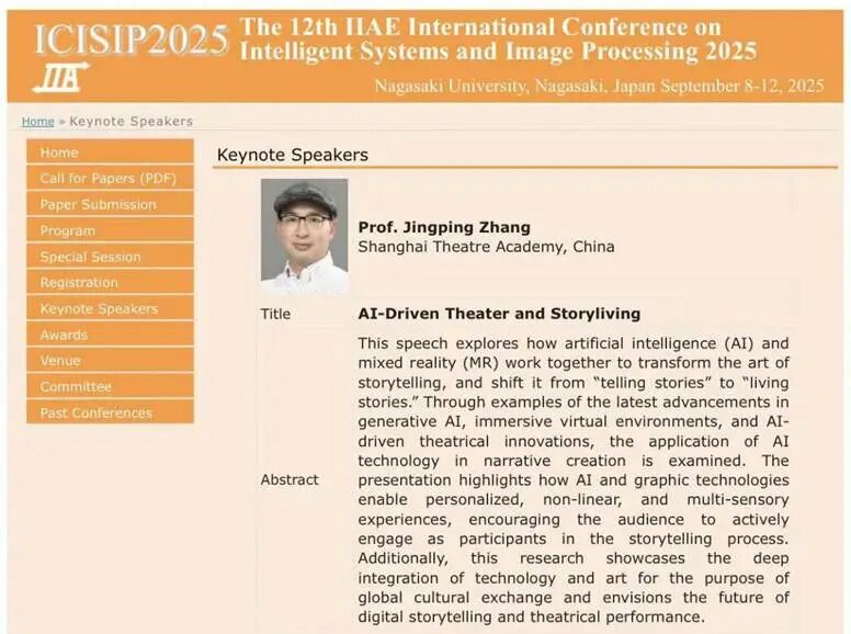 2025年9月8日至12日,第十二届国际智能系统与图像处理会议(ICISIP2025)在日本长崎大学隆重举行。公司张敬平教授率团队受邀参会,不仅作为主旨演讲嘉宾分享前沿洞见,其团队成员的研究论文与混合现实(MR)体验作品《黛玉葬花》更分别入选会议口头报告与成果展览环节。团队在深入把握全球智能系统与图像处理领域前沿动态的同时,也向国际学界集中展示了公司在科技与艺术交叉融合领域的最新研究成果与教学实践成效。